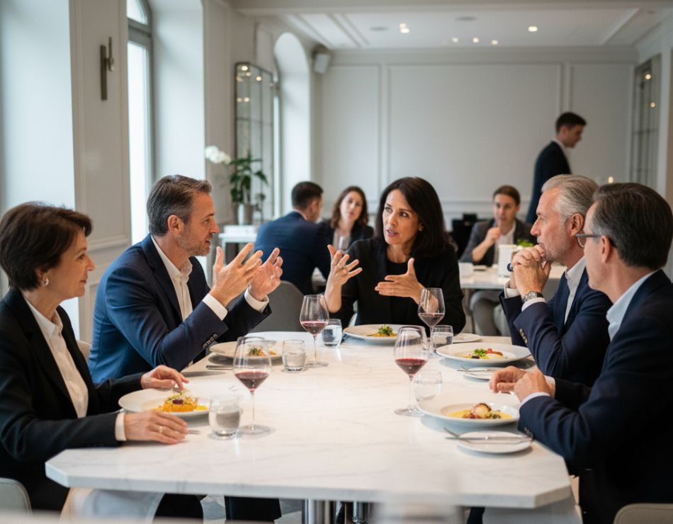 A private setting with premium food and wine creates the perfect atmosphere for trust-based networking.